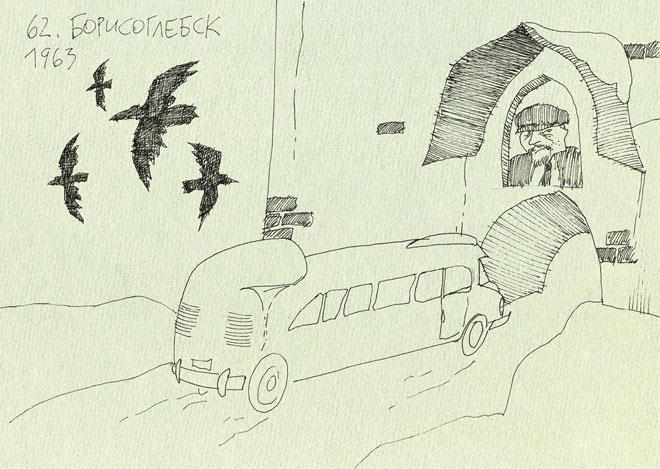 На второй день, переночевав в Доме колхозника (через пятнадцать лет он уже назывался гостиницей «Ростов»), поехали – чего ради? – в Борисоглебск. Час тряслись по ухабам в покрытом инеем автобусе марки ПАЗ. Эти чудища клепали в городке Павловске, где-то рядом с Нижним. Их надо теперь беречь. Подобное в России, боюсь, уже не сделают.