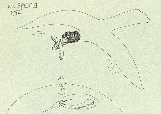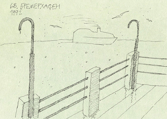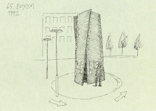 Я пробыл день в Бохуме по пути в Гандеркезее, под Бремен, на выставку в связи с проектом KunstEuropa. Сабина Хэнсген, работавшая тогда в Бохумском университете, предложила прочитать какую-то лекцию студентам-русоведам, за нее платили не то 200, не то 300 марок, деньги тогда ощутимые. А я был беден как церковная мышь.