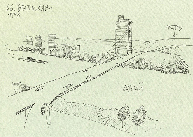 Но о Братиславе. По пути в центр города Братислава мне показалась похожей на южнорусский или украинский город, но в улучшенном виде. Блочные и панельные дома, пирамидальные тополя, все зелено, по дороге катятся старенькие «Шкоды», такие же, как беленькие «Жигули» в Запорожье.