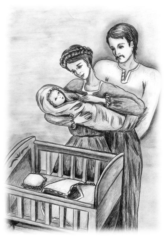 ДашаВышло всё, как он сказал.Вот уж срок родин настал.И появилась на рассветеДевчушка – лучшая на свете.На её крестины мужичок леснойБольшой мешок принёс с собойС куклами, матрёшками,Свистульками и ложками,Дерущимися мишкамиИ заводными мышками,Игрушечными зайцамиИ крашеными яйцами.На руки взял нежно крошку,Подержал её немножко,Острым глазом посмотрел,Крестик золотой надел.– Дитя, дарю тебе игрушки,А ещё пусть твои ушкиОбладают волшебством,Наделю их колдовством.Жизнь большая впереди.А теперь, малышка, спи,Расти, крепни, расцветай,Папу с мамой удивляй.