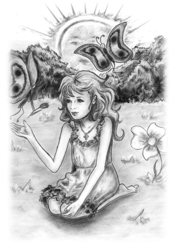 Перекрестил её перстом,В миг один пропал потом.Лишь остались все игрушкиИ заколдованные ушки.Нет дитя на свете краше.Девочку назвали Дашей.Она росла словно цветочек,Средь кустов, деревьев, кочек.Развиваясь на просторе,Расцвела и стала вскореУдивительно красива,Нежна, добра, трудолюбива,Обаятельна, скромна.Льняных волос её копна,Как водопад, струится с плеч,Умна и сладка её речь.Глаза серенькие, ясные,Губки ало-красные,Бела и шелковиста кожа,На ангела во всём похожа.Все в лесу её любили:И зверюшки, что там жили,Птицы, бабочки, букашки,Колокольчики, ромашки,Липы, сосны и дубы,Что на страже были у избы,И, весной роняющие слёзы,Белоствольные берёзы.