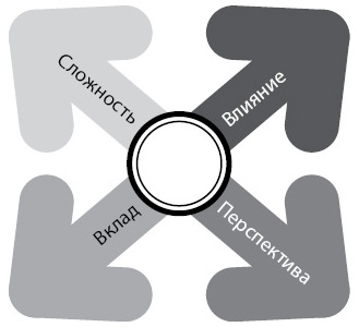 И тогда карьерное движение является не движением от роли к роли или от должности к должности по карьерной лестнице, а выходом на следующий уровень по этим четырем векторам.