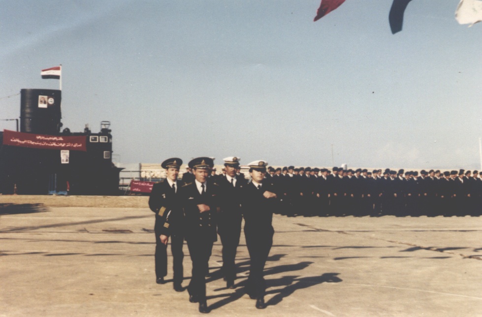 Советские и сирийские командиры подводных лодок докладывали о спуске и поднятии государственных символов обеих стран Послу Советского Союза в Сирийской Арабской Республике и министру обороны САР соответственно. На этом торжественная часть церемонии передачи наших подводных лодок сирийской стороне завершилась.