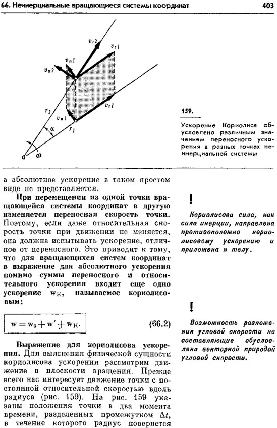 Во втором варианте относительная скорость направлена перпендикулярно постоянному радиусу вращающейся системы. При этом абсолютная линейная скорость является величиной постоянной. Но это есть не что иное, как равномерное вращательное движение, динамику которого с классической же точки зрения определяет исключительно только центростремительное ускорение. Следовательно, либо никакого ускорения Кориолиса при тангенциальном относительном движении нет, либо классической физике следует пересмотреть свои взгляды, как на явление Кориолиса, так и на классическую модель вращательного движения.
