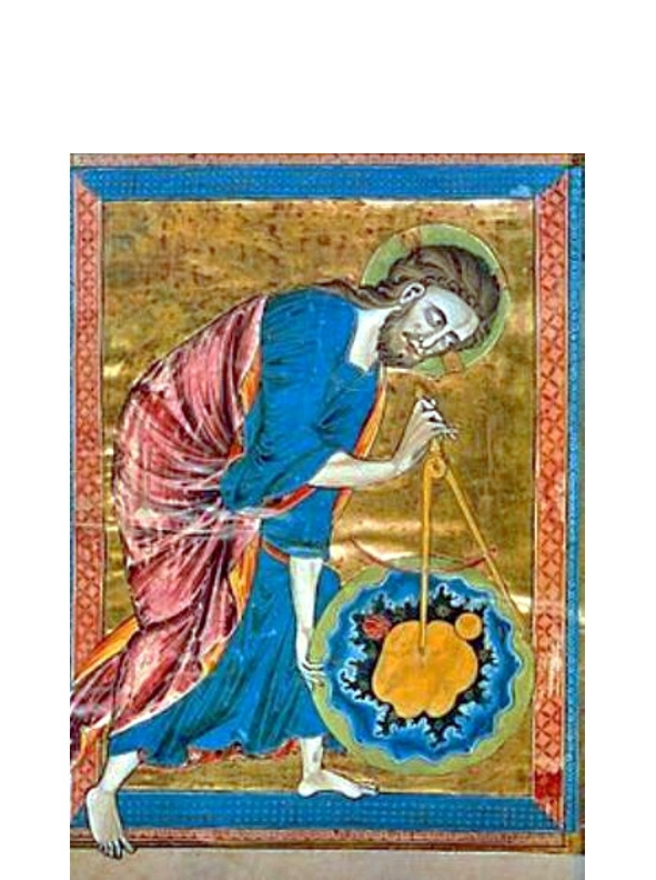 Это бог, создающий вселенную с помощью циркуля Видимо он этот циркуль позаимствовал у древних римлян. Они тоже процарапывали окружности на блюдце за неимением пера или графита. Поэтому церковь заявляет, что всё в библии правильно и с современной точки зрения. Вот нам пример такой казуистской риторики. Протестантский автор Гордон Гловер учит: -«Христиане нуждаются в понимании первой главы книги Бытия, [понимании того], что она собою представляет: это тщательная передача истины о материальной Вселенной древними стандартами, которые Бог использовал как средство выражения и распространения для донесения вечной богословской истины Его народу. Мы не должны пытаться превратить книгу Бытия во что-то другое, перетаскивая её через 3500 лет научного прогресса. Читая Бытие, сегодняшние христиане нуждаются в перемещении самих себя назад к Синаю, оставив свои современные умы в 21-м веке. Если вы только помните о повествовании этой главы следующее: Бытие не даёт нам научное созидание мира. Оно даёт нам нечто намного более глубокое и практичное, чем это. Бытие даёт нам библейское богословие творения».
