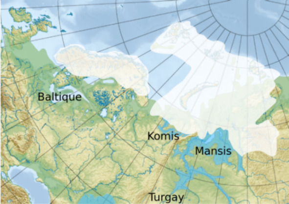 То есть у нас получается-таки, что оледенение надвигалось с севера и на Скандинавию, и на Балтику, и на территорию современного Коми и низинную долину Манси!