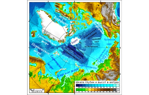 Зрелище тем более невероятное, когда смотришь на современную карту Арктики…….. Посмотрите на шкалу глубин Северного Ледовитого океана. По большей части она не превышает 100 метров. То есть вполне логично предположить, что 20—30 тысяч лет назад до катастрофического провала земной коры он представлял собой материковый архипелаг. Архипелаг аналог современной Антарктиды, на котором вполне мог зародится не один. а целая плеяда ледниковых периодов.