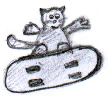 Рядом по кирпичному бордюру на скейтборде прокатился знакомый котёнок.