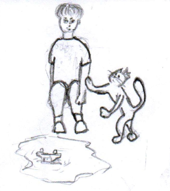 Кипа дотянулся до лап Рыжего. Эмиль вцепился в задние лапы Кипы. И Паштет (все завидуют его силе) вытянул котов.