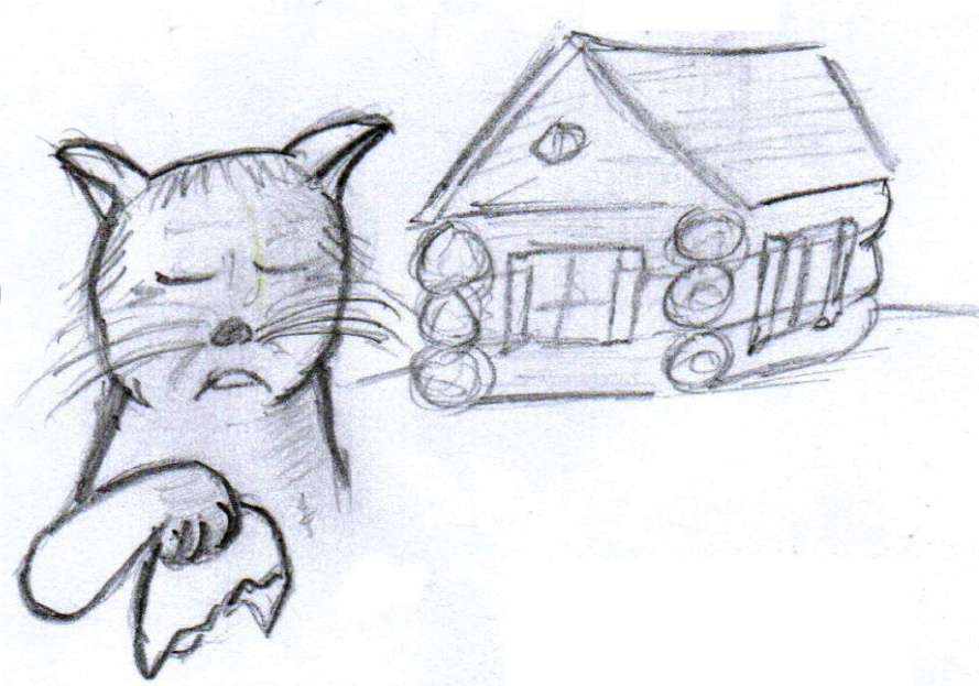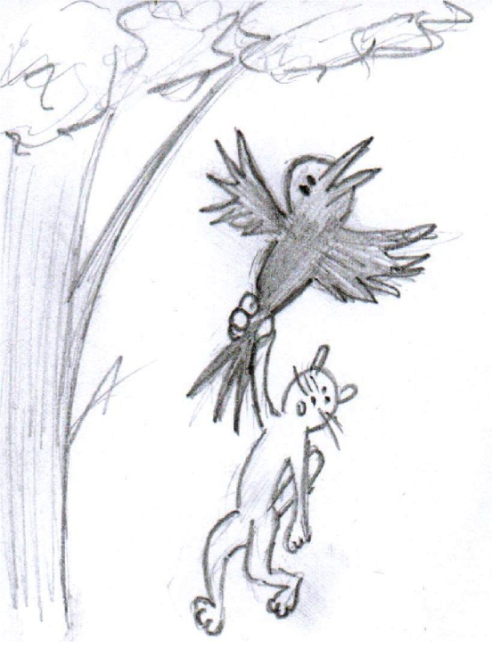 Неподалёку стояла кошка тётя Дина. Дрожащими лапами она хваталась за голову, а губами хваталась за воздух.