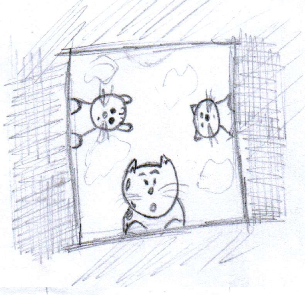Кипа в темноте взял одного котёнка и поднял его, но до света далеко. Эмиль протянул лапы. Не смог дотянуться. Тогда Паштет взял его за лапу и опустил вниз. Паштет держал крепко, стараясь не уронить друга.