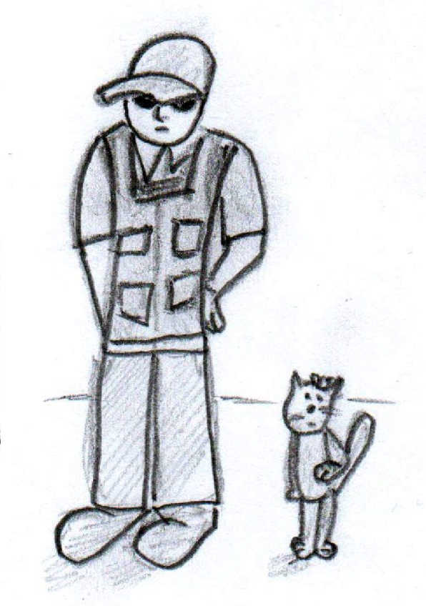 Давайте немного про него расскажу. Это папа девочки, хозяйки Тигрёнка, и дядя мальчика, у которого живёт Бета. Он спецагент. Ловит шпионов, всяких вредных и злых дядек. Мешает им, чтоб те не вредничали и не злодейничали. Несмотря на свой гигантский рост, широкие плечи, крупные руки, ему удаётся быть незаметным, и злодеи часто попадают впросак. Специальный агент возвращался с опасного задания домой. И вдруг Бета, а вы поняли, что и она служит в специальном подразделении, сообщила, что пропадают коты со двора, а ещё исчезли дочка и племянник. И спецагент бросился на помощь.