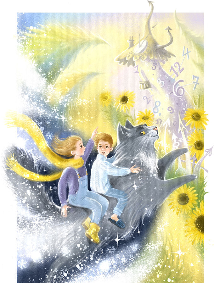 – У нас нет времени на пустые разговоры, – произнес важно кот. – Нам надо спешить, поэтому держитесь крепче!