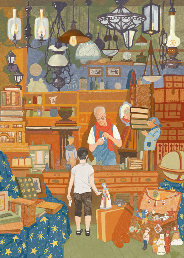 Миша понадеялся, что это верное место, и вошел в дом. Внутри магазин оказался еще более сказочным. На потолке висели старинные лампы, повсюду продавались диковинные предметы – монеты, потрепанные книги, склянки с чем-то непонятным, новогодние игрушки, огромные покрывала, расшитые звездами. Однако пакетиков или бутылочек со специями видно не было.