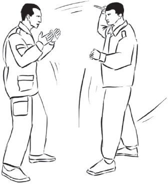 При обучении подчиненных руководитель должен постоянно напоминать им об осторожном обозначении ударов и болевых действий на партнере.