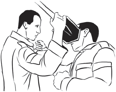Показ должен быть образцовым, создавать ясное представление о приемах, укреплять интерес к их изучению. Приемы необходимо показывать так, чтобы действия руководителя были видны всем обучаемым. Для показа наиболее удобен сомкнутый одношеренговый или двухшеренговый строй, когда шеренги стоят лицом друг к другу (расстояние 6 – 8 м), а руководитель находится между шеренгами посредине строя.