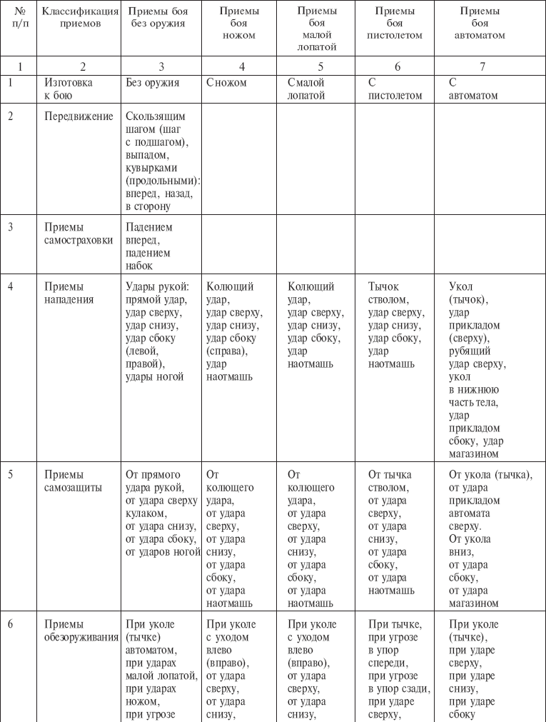 • изучение приемов и действий рукопашного боя, предусмотренных программой обучения;