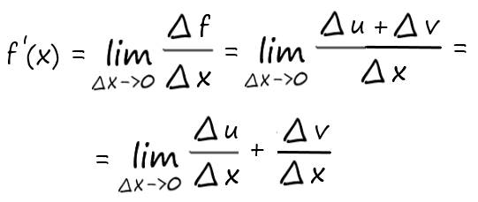 ∆f = f(x+∆x) – f(x) = u(x+∆x) + v(x+∆x) – u(x) – v(x) = u(x) + ∆u + v(x) + ∆v – u(x) – v(x) = ∆u + ∆v