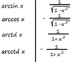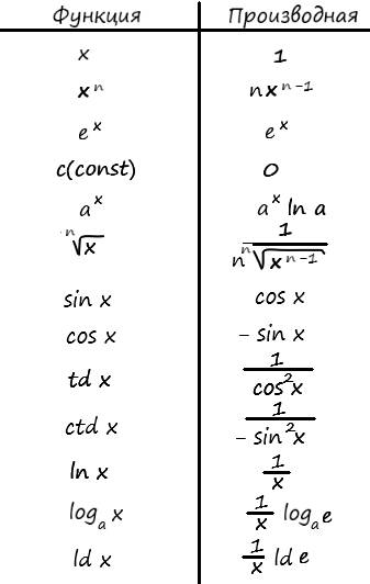 В качестве небольшого дополнения, приведу список наиболее распространённых табличных производных: