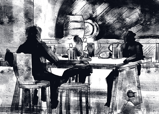 – Чего вам? – официант прищурил один глаз и откашлялся.