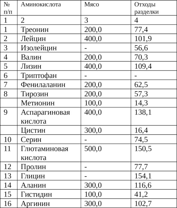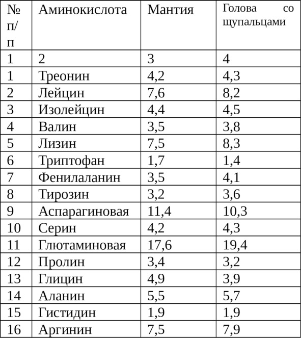 Аминокислотный состав белков мантии и головы со щупальцами японской каракатицы.