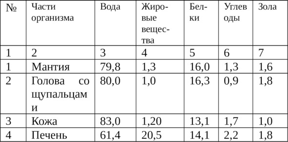 Азотистые вещества мантии каракатицы на 84% представлены белками и на 16% небелковыми веществами.