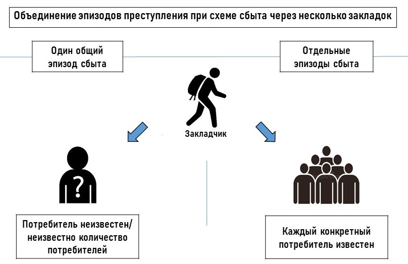 Но уже однозначно Верховным судом делается такое допущение – сам факт размещения отдельных закладок говорит о том, что потребители разные, если не доказано иное (п.10).