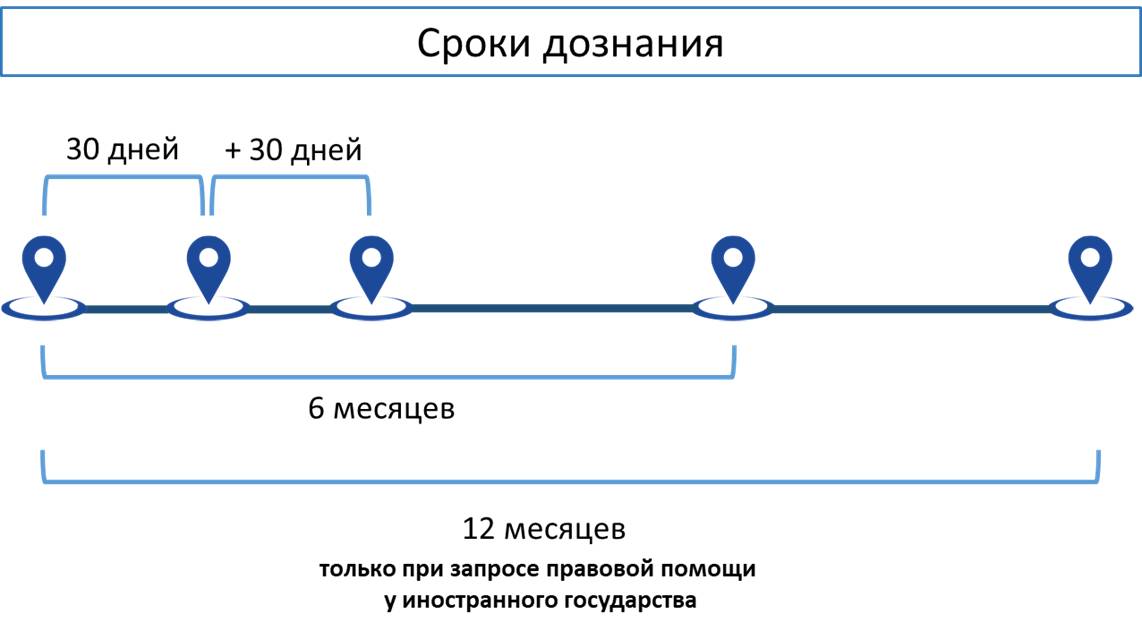 Начальный срок дознания составляет 30 суток (ч.3 ст.223 УПК), но они с легкостью продляются районным прокурором еще на 30 суток, и также легко могут продляться тем же районным прокурором до 6 месяцев (ч.4 ст.223 УПК). А вот до 12-ти месяцев продлять уже сложнее – только если есть запрос к иностранному государству об оказании правовой помощи (ч.5 ст.223 УПК).