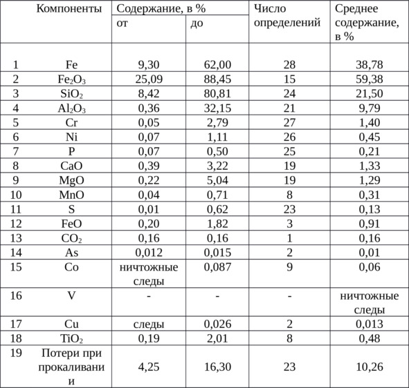 Fеобщ = 58,74; Ni = 0,62; Сr2О3 = 0,91; Со = 0,094;