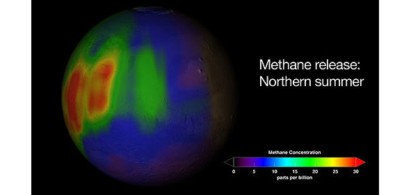 В условиях Марса этот газ довольно быстро разлагается, поэтому должен существовать постоянный источник его пополнения. Таким источником может быть либо геологическая активность (но действующие вулканы на Марсе не обнаружены), либо жизнедеятельность бактерий. Интересно, что в некоторых метеоритах марсианского происхождения обнаружены образования, по форме напоминающие клетки, хотя они и уступают мельчайшим земным организмам по размерам. Одним из таких метеоритов является ALH 84001, найденный в Антарктиде в 1984 году.
