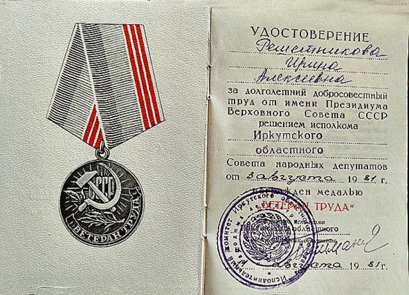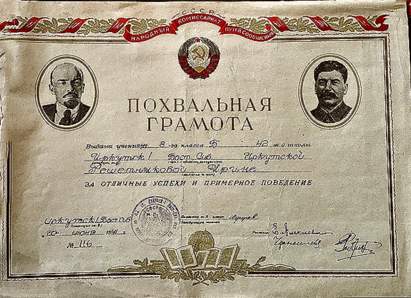 Ирина родилась в 1926 году, 13 января. Окончила среднюю школу №42 (сейчас это лицей ВСЖД), мединститут, университет марксизма, аспирантуру все закончила на пятрку, с золотой медалью. Училась очень хорошо, всегда была в почете.