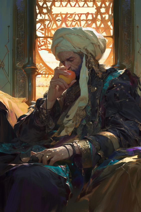 В один из дней Али, по своему обыкновению, возлежал на коврах в главном зале дворца, на столе рядом красовались ближневосточные лакомства – лукамат, кунафа, малай педа, ладду, лунные пряники – и спелые фрукты – от персиков, клубники и ананасов до экзотических лонганов и мангостанов.