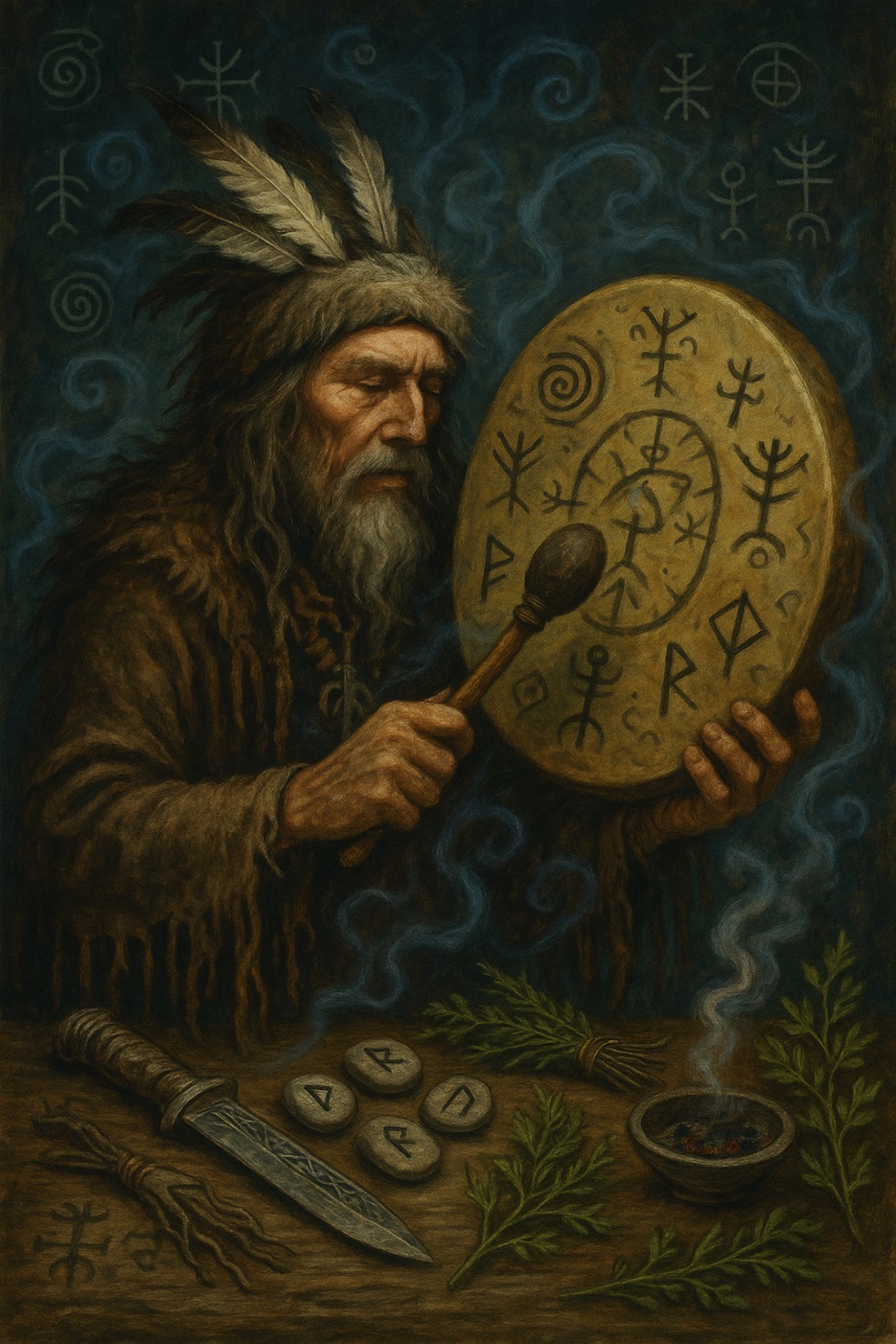 Барабан является одним из самых мощных и универсальных инструментов в шаманских ритуалах, служащим важнейшим средством связи с духами, а также инструментом, с помощью которого шаман входит в транс и поддерживает связь с миром духов. В шаманизме барабан часто ассоциируется с сердцем земли, а его звук – с ритмом жизни и энергии. В различных культурах, от сибирских народов до коренных народов Америки, барабан используется для установления контакта с потусторонними мирами и для исцеления как самого шамана, так и тех, кто обращается за помощью.