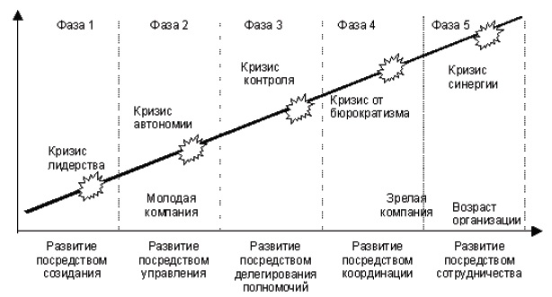 Рис. 1.2. Модель жизненного цикла организации Л. Грейнера