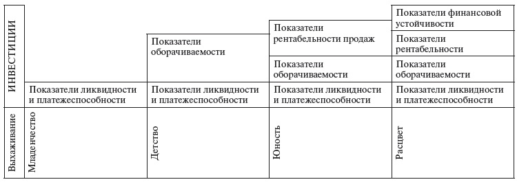 Подытоживая сказанное, приоритетные финансовые показатели компании на разных этапах жизненного цикла можно представить следующим образом (рис. 1.5, 1.6).