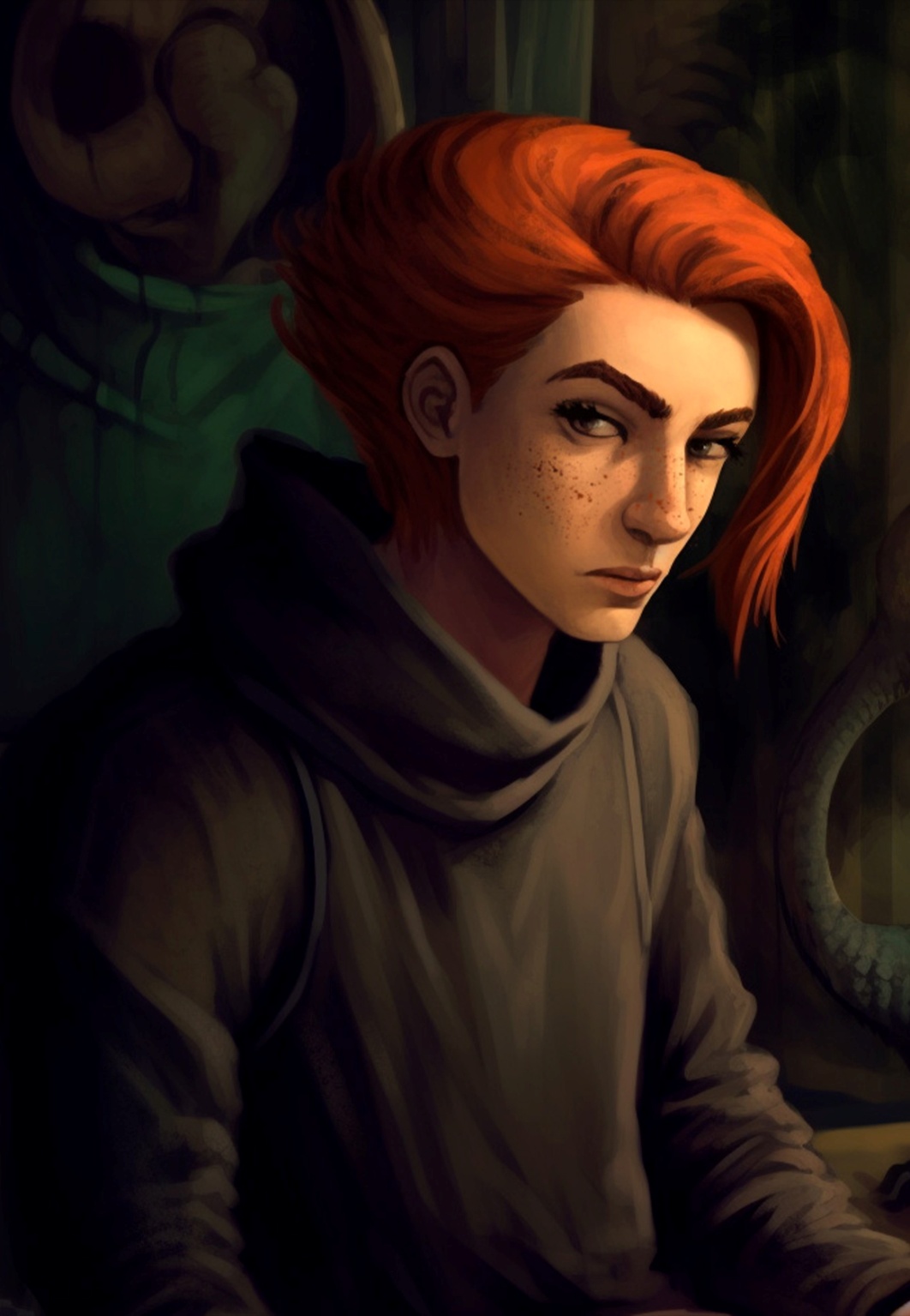 Но на свеженькой фотографии размером 7x7 красовалась лицо вовсе не страшного огромного мужика с величественным взглядом и волевым подбородком. Это был молодой рыжий парнишка с чёлкой на левый бок. Его почти девичье личико было украшено россыпью веснушек в области круглых щёк и симпатичного аккуратного носа. А большие миловидные карие глаза были окаймлены густыми чёрными ресницами, которым может позавидовать любая модница.