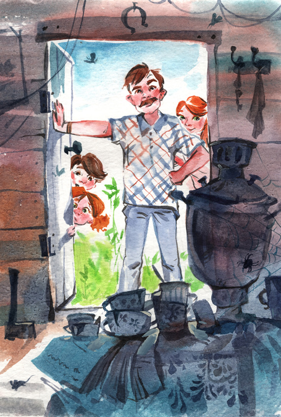 Мама оторвала от ближнего окна газету, и в доме стало светлее. С каждым освобождённым окном становилась понятнее обстановка, показывались детали убранства дома. По центру гостиной стоял круглый стол с битыми чашками и старыми книгами. Грязный самовар возвышался над всем этим великолепием. В одной комнате несколько кроватей, стулья в чехлах, на стенах иллюстрации из детских сказок, акварели с видами закатов и полей. Небольшая кухня с беленной печкой, устланная поеденными молью половиками, была вся заставлена старой и ржавой посудой, а груда чугунных котелков красовалась как неприступная гора в углу за печкой. В другой комнате стоял старый деревянный комод, тахта, заваленная сеном и буфет с резными дверцами.