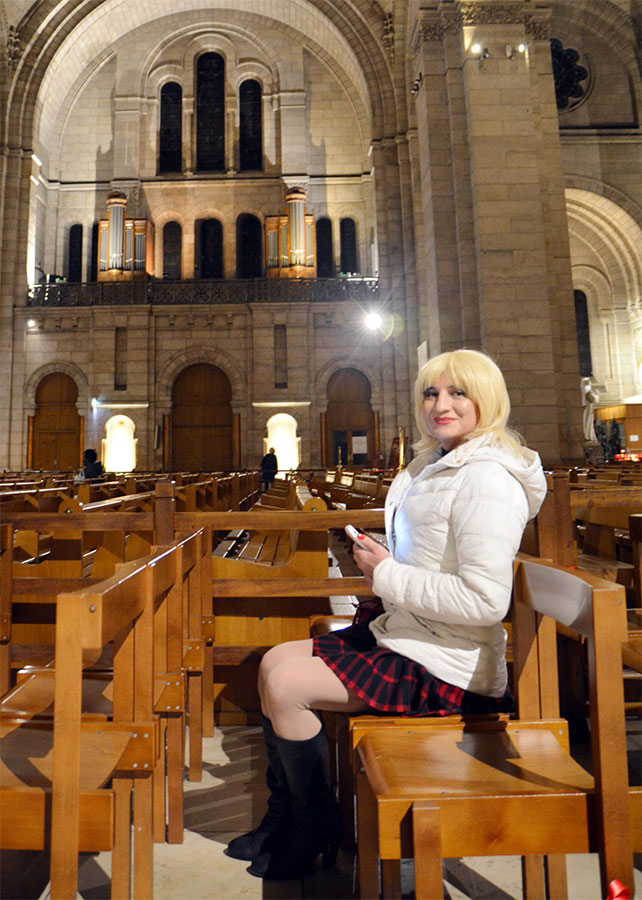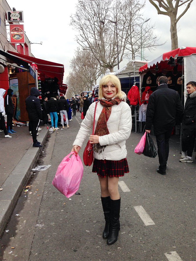 День шестой. 7 февраля, Вторник. Часть 1. Снова Монмартр – замена моего платья. Смотровая площадка. "О мон шер!" Внезапный адъюльтер. Станция метро «Сталинград». Фотосессии. Начало сборовНа следующий день надо было ехать менять моё платье. Который день подряд бриться – пытка не для слабых!! Однако я привела себя в порядок, в том числе и благодаря новому хорошему французскому крему для бритья, и мы смело двинулись в путь. Было солнечно, хоть и немножко прохладно. И слабый ветерок. Опять потрепывал мою юбочку. Но видимо частое бритье всё-таки делает лицо более маскулинным… ((Было ощущение, будто меня опознают. Каждый 10-й вглядывался меня как-то по-особенному. Хотя девочки говорили, что я выгляжу великолепно – что-то меня скребло. А когда из метро поднимались к фуникулёру, и солнце светило мне прямо в глаза, ярко освещая лицо со всей его синькой под носом (я шла как всегда в своей любимой коротенькой разлетайке, которую опять колыхал ветерок), какой-то араб, раздвинув руки словно в объятия, заорал: "О Мон шер!"… Не "Ма щёр" (Моя дорогая), а именно "Мон шер" (мой дорогой) … Сука! Да заорал так, что полулицы на него обернулось, в том числе идущие метрах в 50 впереди нас полицейские. Видимо увидев их, он закрыл свой рот и утихомирил непрошеный пыл, а мы прошли мимо как ни в чем не бывало. Я сделала морду плугом, словно ничего и не было. А что ещё оставалось делать?.. С другой стороны, государство, в лице полицейских, явно продемонстрировало, что будет защищать меня от гопника, невзирая на мою нестандартную гендерную идентичность… У нас подобную ситуацию я даже представить боюсь…