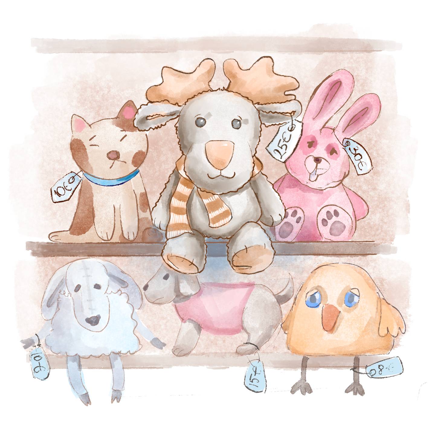 Она потрепала Ослика по бежевым мягким рогам и ушла заниматься своей работой. А Ослик остался среди других игрушек и конфет. Все же супермаркет был больше продуктовым, хоть перед праздниками на полках появлялись и игрушки. Рядом сидели плюшевые медведи, зайцы, собаки и кошки. И их довольно быстро забирали. Поэтому Ослик не успевал с ними познакомиться как следует. Зато в магазине очень вкусно пахло шоколадом, поэтому Ослик был готов сидеть в ожидании долгое-долгое время.