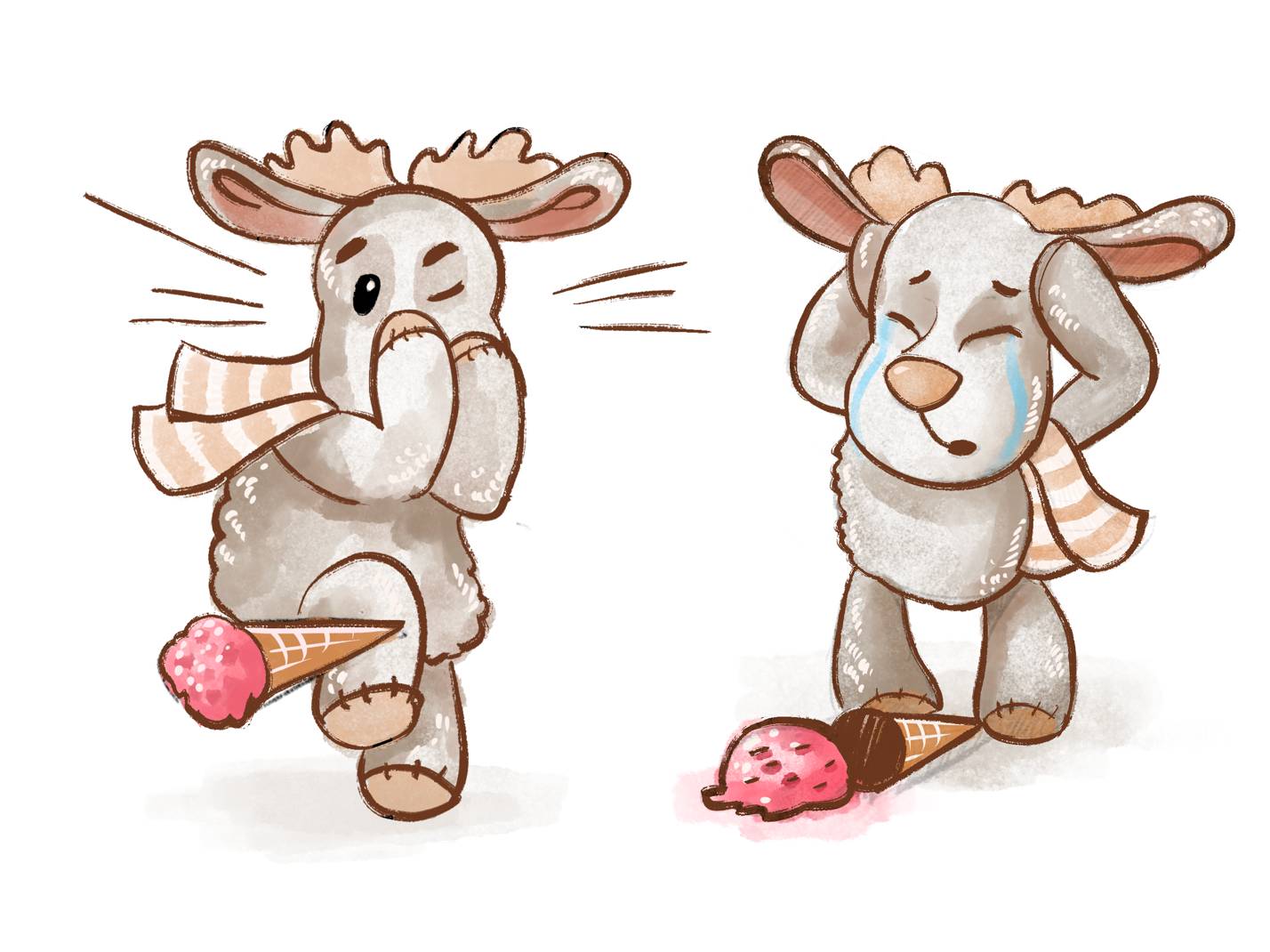 Но однажды Ослик увидел мороженое в руках у хозяйки. Он хотел только посмотреть, какое оно там в вафельном рожке, потому что это ведь очень важно – клубничное, шоколадное, фисташковое… слишком большой выбор. Подпрыгнул и… выбил его из рук. Шмяк, и мороженое упало на голову Мишутке и Лисику, и все его друзья оказались во вкусном мороженом.