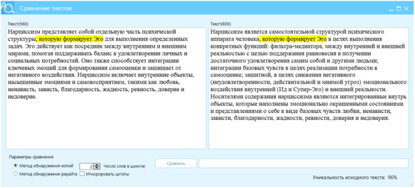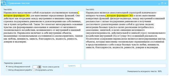 Рисунок 24 – Перефразированный текст, левое окно, источник – правое окно, отличие Ш2=96%