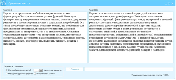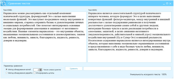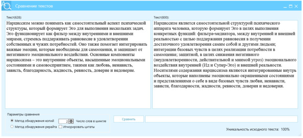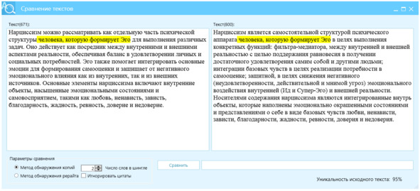 Рисунок 22 – Перефразированный текст, левое окно, источник – правое окно, отличие Ш2=95%
