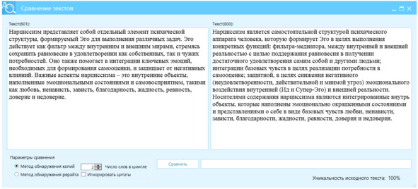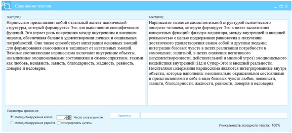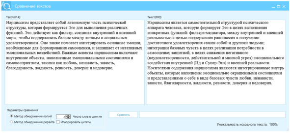 Рисунок 26 – Перефразированный текст, левое окно, источник – правое окно, отличие Ш2=97%