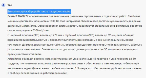 Простейший промпт (инструкция): Выполни глубокий рерайт текста на русском языке, рис. 39.