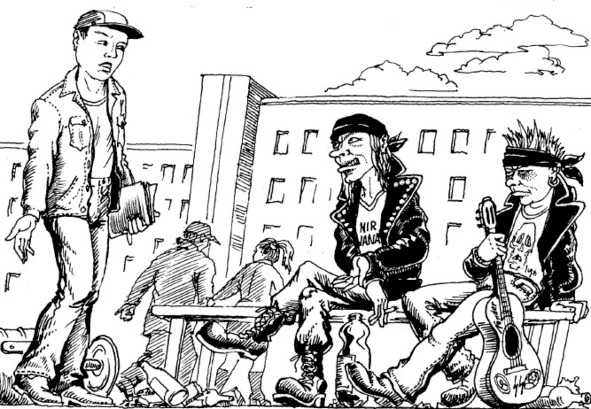 Meanwhile, his friend sat down next to Spider -an informal guy from the youth hostel Cabbage, with red hair and eternally swollen after yesterday’s guy who came from far away district center to study environmental engineering. His nickname Cabbage got because of the jars of sauerkraut that his mum sent to her son every week from the village. The son would prefer vodka or money, but the mother believed that the cabbage was good, and the whole hostel believed that sauerkraut was quite good even with illegal “Moskovskaya” vodka at 18 thousand roubles for half a litre. Cabbage wore an earring in his ear, a t – shirt with a portrait of Kurt Cobain on his fat body and knew how to play the old guitar the songs of Tsoi and Egor Letov. Sometimes he was beaten for his earring and t-shirt and sometimes he was not beaten for Tsoi and Letov. Cabbage had a difficult but interesting life.