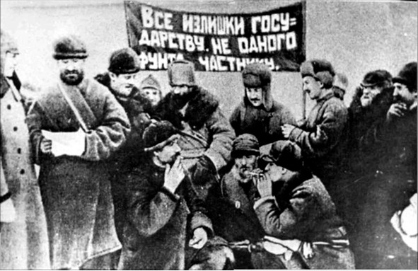 Продовольственный кризис в России не был следствием Октябрьской революции. Он возник в годы первой мировой войны, обрушившей на широкие слои населения России неисчислимые бедствия, среди которых вскоре стал доминировать голод. Лозунг «Хлеб голодным!» был одним из главных в русских революциях 1917 года – и Февральской, и Октябрьской. Появление этого лозунга само по себе свидетельствовало о неудаче продовольственной политики и царского и Временного правительств, хотя и то, и другое принимали, казалось бы, необходимые меры. Уже в августе 1915 года были введены твердые цены на хлеб для правительственных закупок (на военные нужды). В декабре 1916 года кризис правительственных заготовок заставил встать на путь хлебной разверстки, то есть распределения государственной потребности в хлебе между губерниями, селениями, хозяйствами в качестве обязательств на его поставку. Хлебными поставками обязывались даже не зерновые губернии – Вологодская, Новгородская, Костромская и др. В хлебопроизводящих районах разверстка сразу оказалась непосильной для крестьянских хозяйств. Со всей определенностью об этом заявила Тамбовская губернская земская управа, потребовавшая снижения поставок: «Не считая себя вправе сознательно вести население к бунту и голоду, губернская управа не находит возможным производить разверстку в указанных министром земледелия размерах».34