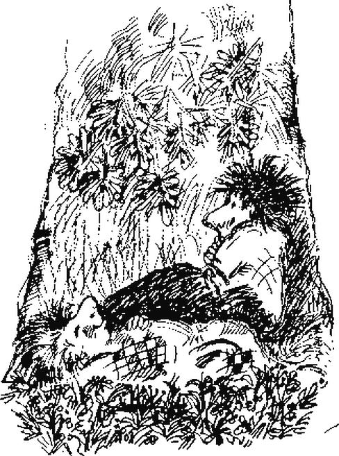 Деревья в конце лужайки зашевелились вновь, и на лужайку выбежала целая толпа пухленьких, возбужденных снопсиков, похожих на маленькие груши-скороспелки. Каждый их них нес маленькое ведерко. Впереди спешил бодрый старичок, словно знаменем, он размахивал большим деревянным половником. Снопсики подкатили к ведру тяжелый валун, их предводитель взобрался на него и принялся наполнять молоком ведерки подчиненных. Затем старик проверещал какую-то команду – снопсики выстроились в походную колонну и, дружно затопав, скрылись в лесу. Старичок уходил последним, гневно прокричав на прощанье что-то вроде: «Снип-сноп-снап-снуп!»
