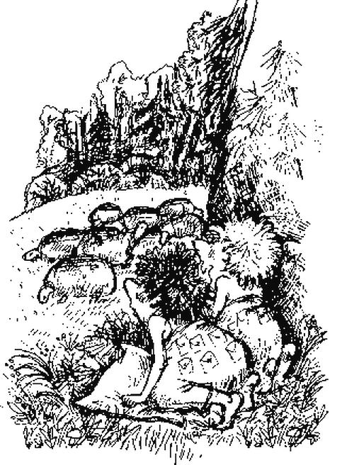 Надежно защищенные мощной веткой дерева, свисающей почти до земли, друзья принялись разглядывать лужайку. Залитые лунным светом, по ней бродили большие пятнистые животные, похожие на черепах. Они с наслаждением жевали сочную лесную траву, издавая при этом резкий хрустящий звук, который и помешал путешественникам спокойно доспать до утра. Необычные черепахи безмятежно и спокойно продвигались по поляне, занятые своим лунным завтраком.