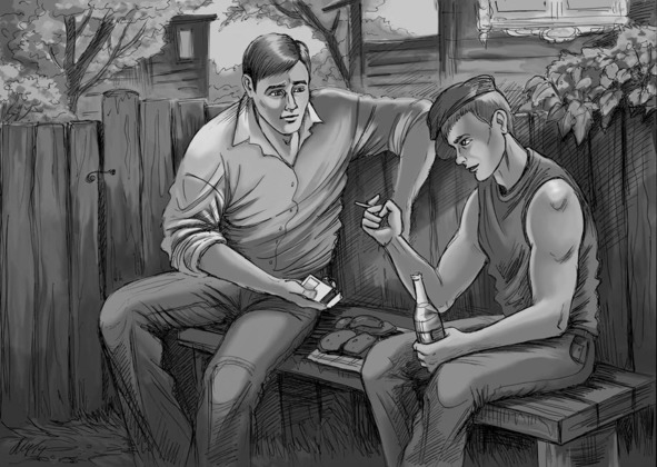 Глеб вышел на задворки и сел на лавочку рядом с Юркой.