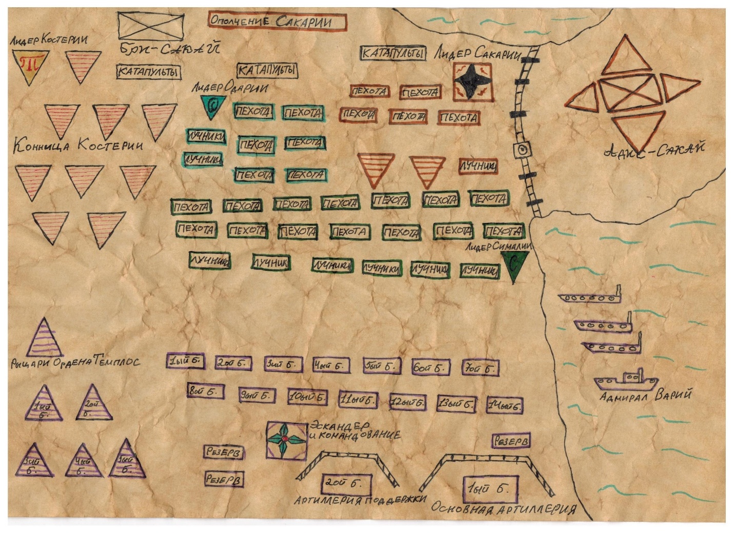 Полководцы разошлись. А Эскандер ещё десять минут рассматривал карту и планировал сражение, затем вышел из своего шатра, оседлал коня и отправился к солдатам.
